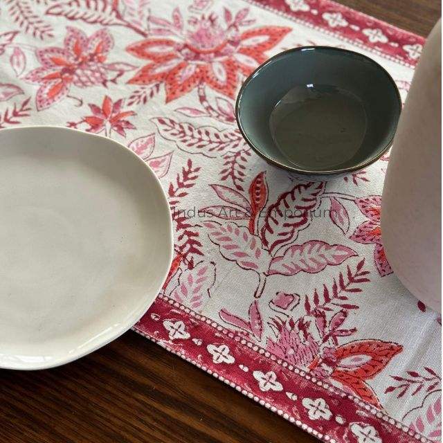 White & Red Indian Cotton Canvas Hand Block Printed Cotton Table Runner