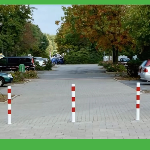 White Red Reflective Steel Bollard Fixed Deterrent Ground Anchored Outdoor Site Installation Concrete Mounted Concrete Strips