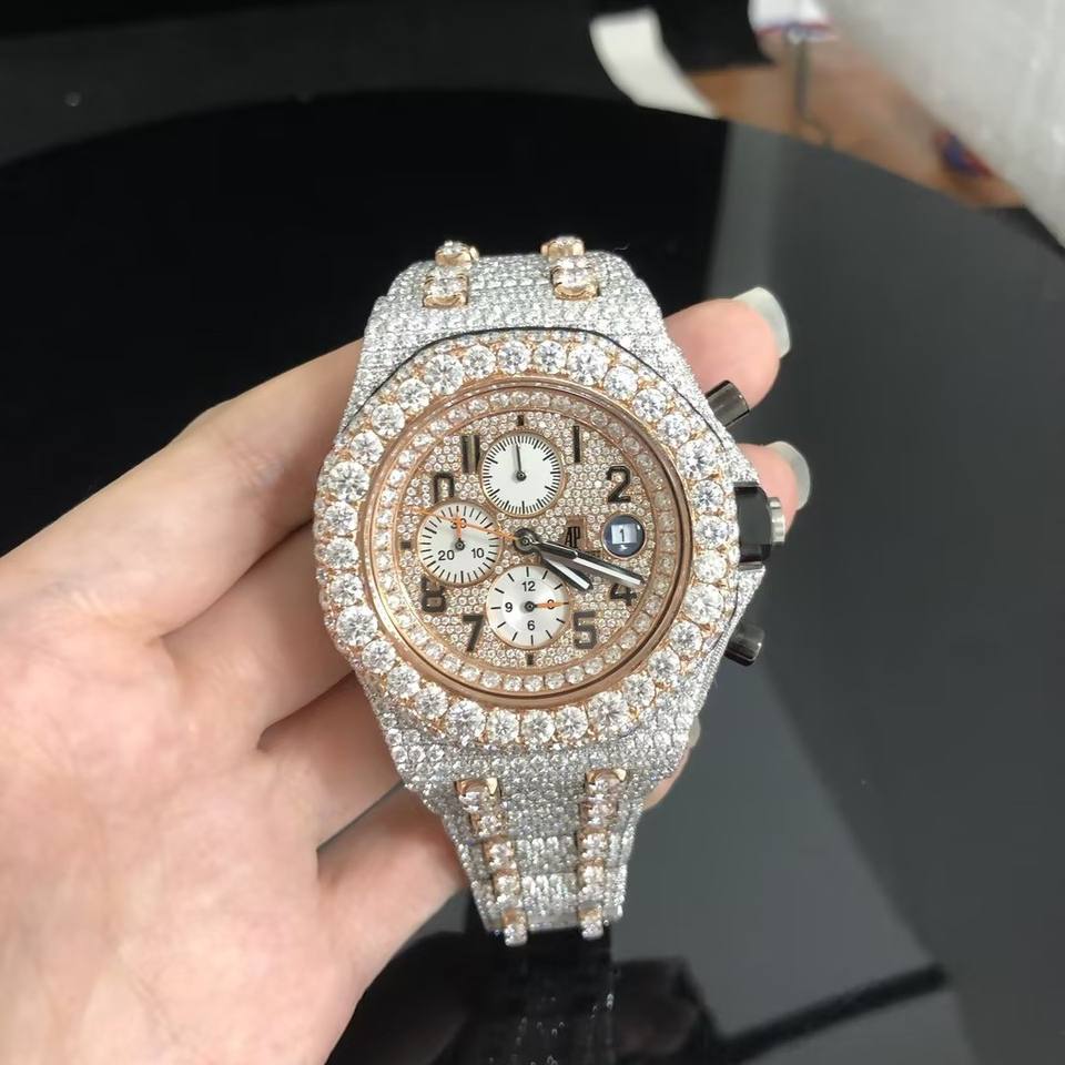 White Rose Stainless Steel Diamond Luxury ETA Automatic VVS D Moissanite 3BAR Water Resistant Belt Strap Sparkling Men's Women's