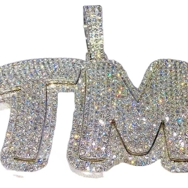 White Round Shape Moissanite TM Letter Customized Pendant 925 Sterling Silver Moissanite Pendant & Other Diamond Jewelry