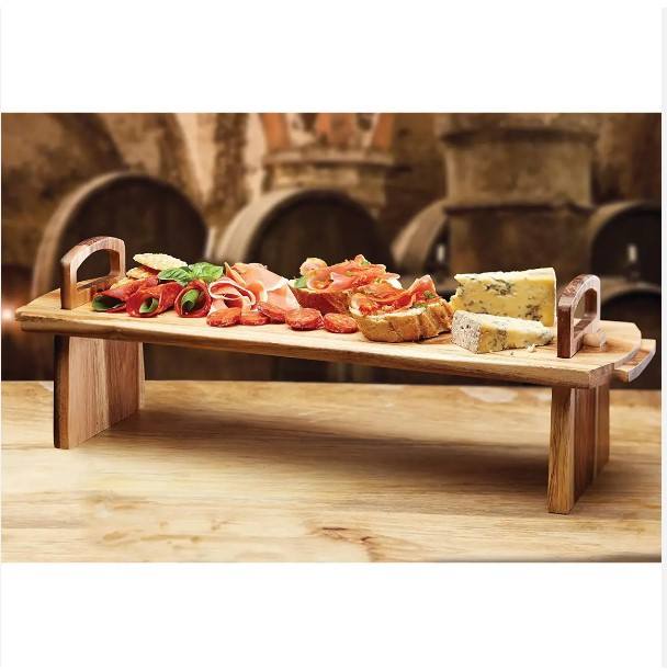 White Royals Hot Safe Acacia Wood Raised Modern Design Collapsible Serving Tray & Platter with Storage Stand for Christmas