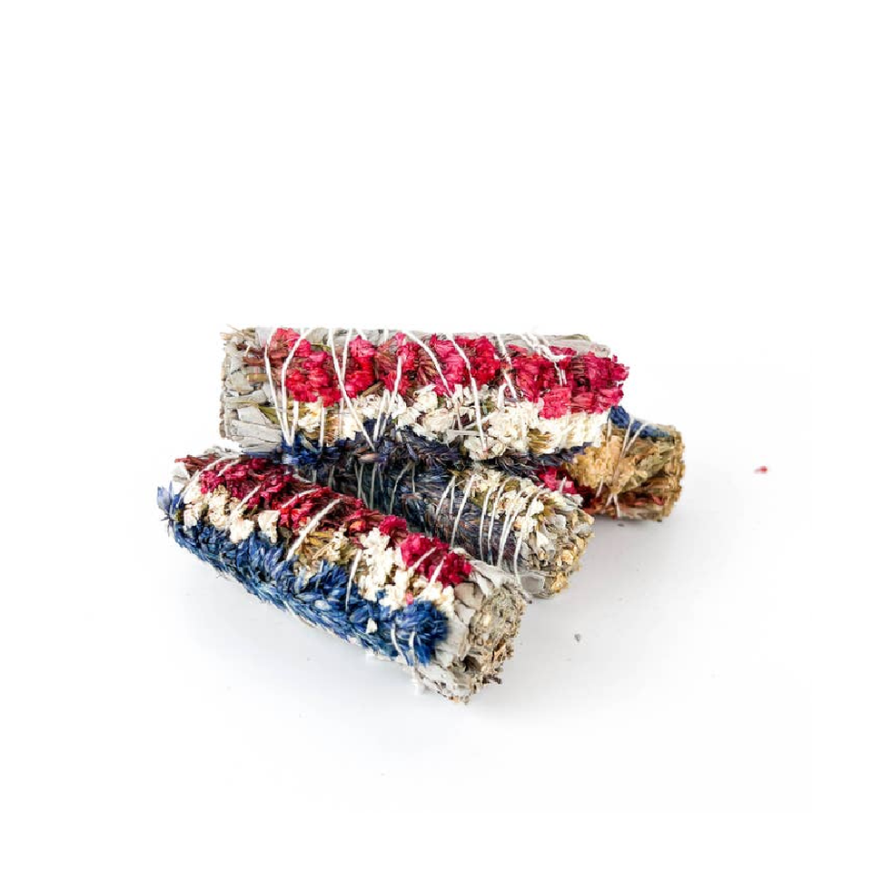 White Sage With Red White _ Blue Paper Flower Herbal and Organic Natural White Sage Incense Sticks