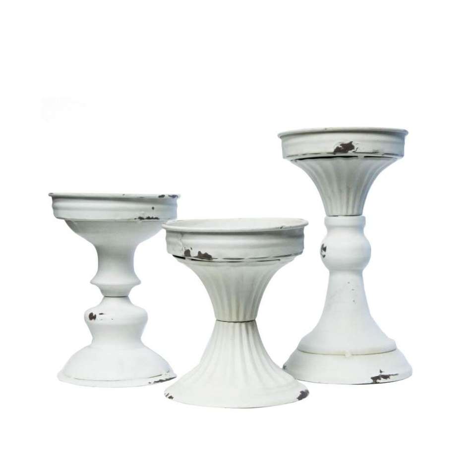 White Set of 3 Metal Pillar Candle Holders for Indoor Decor