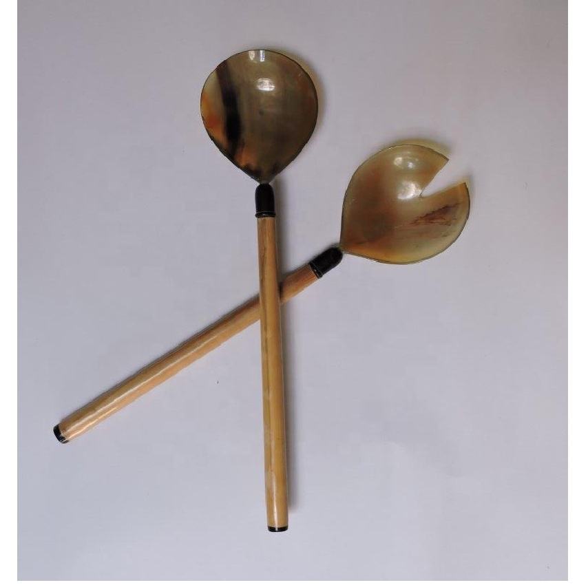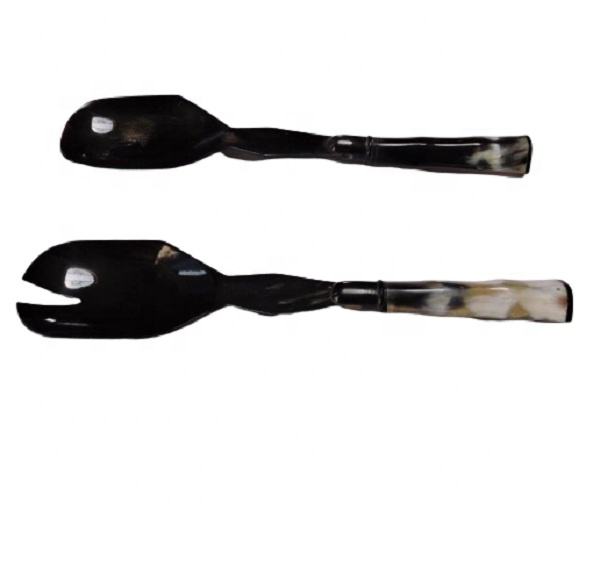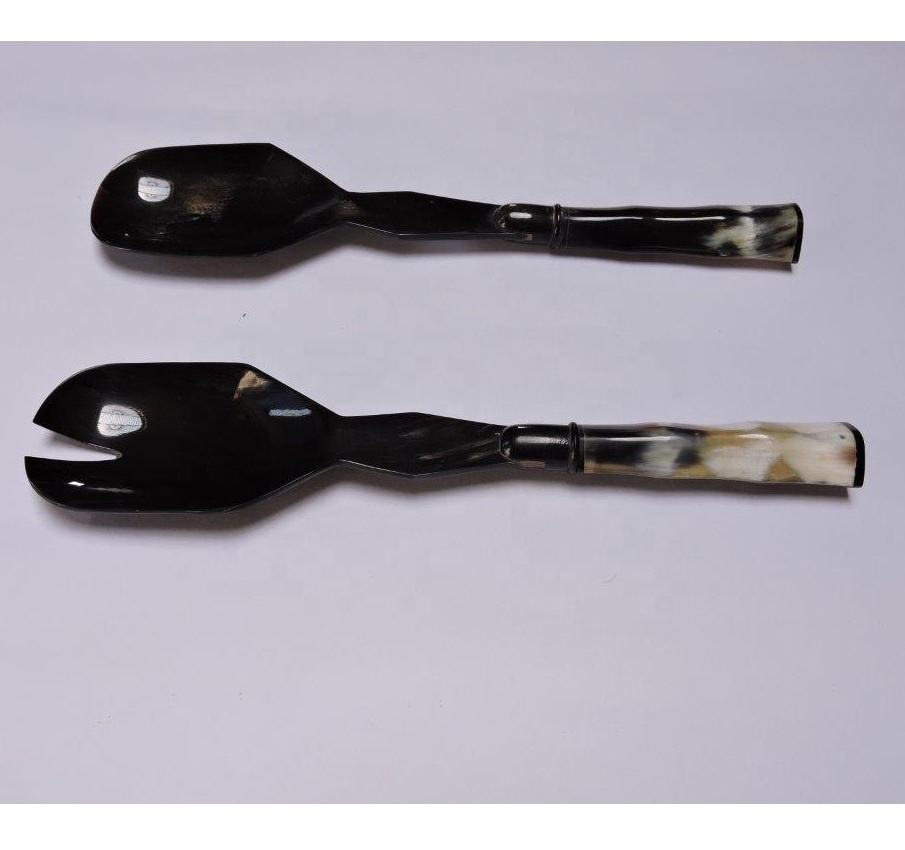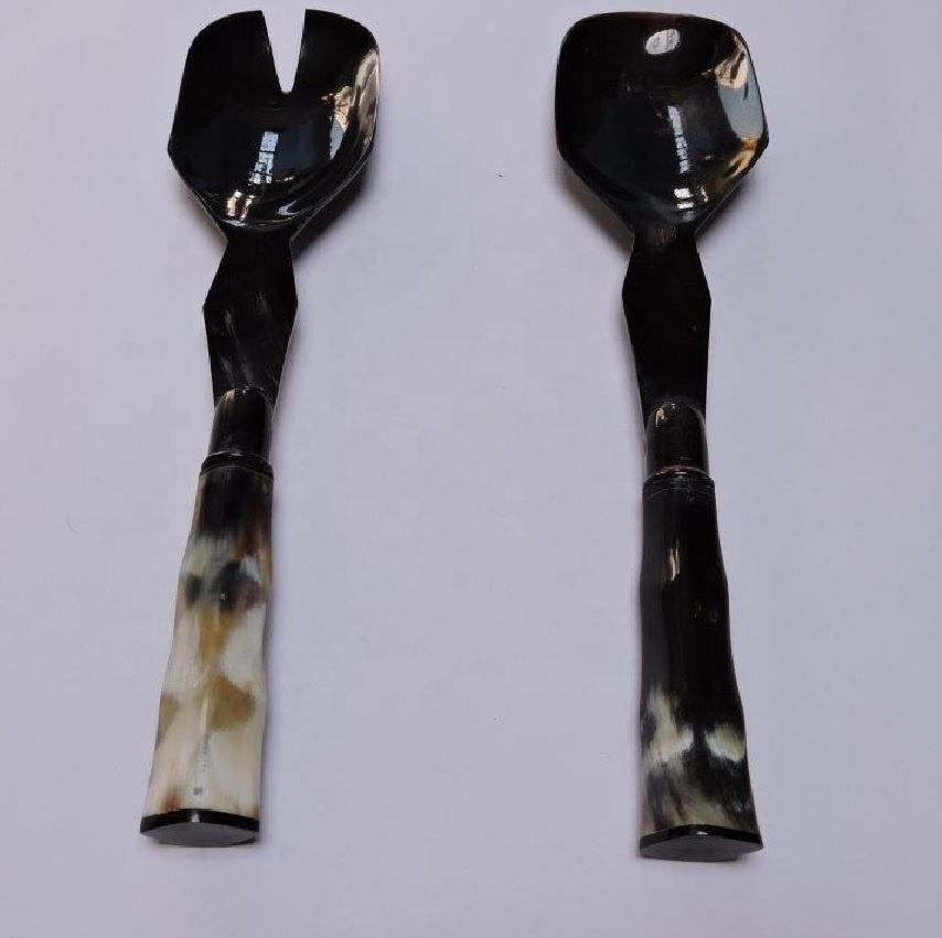 White Shaded Black Buffalo Horn Salad Server Spoon Manual Vegetable Dryer Salad Tool Customizable for Business Baby Use