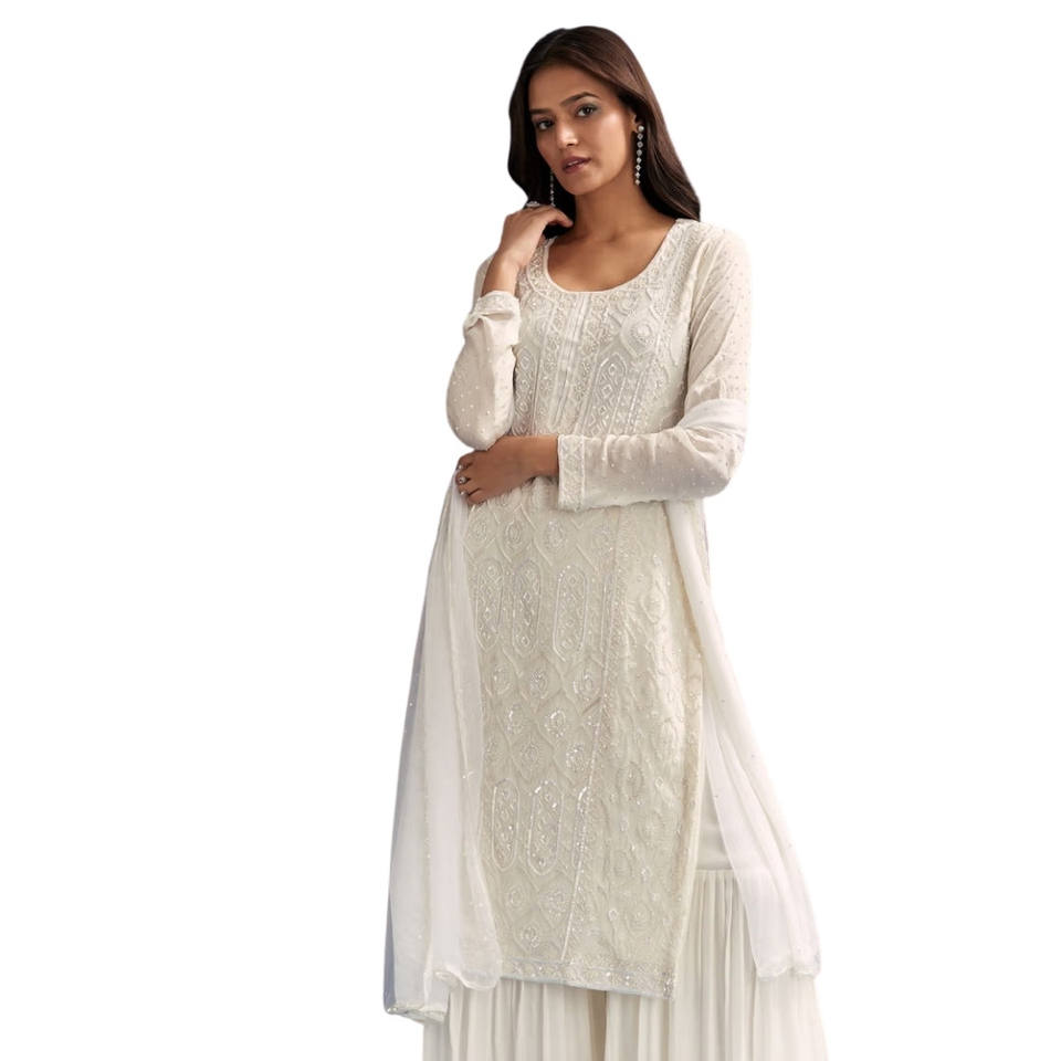 White Sharara Suit with Sequin Details and Dupatta for Eid Wholesale Weddings Receptions Bulk Cultural Gatherings and Festive