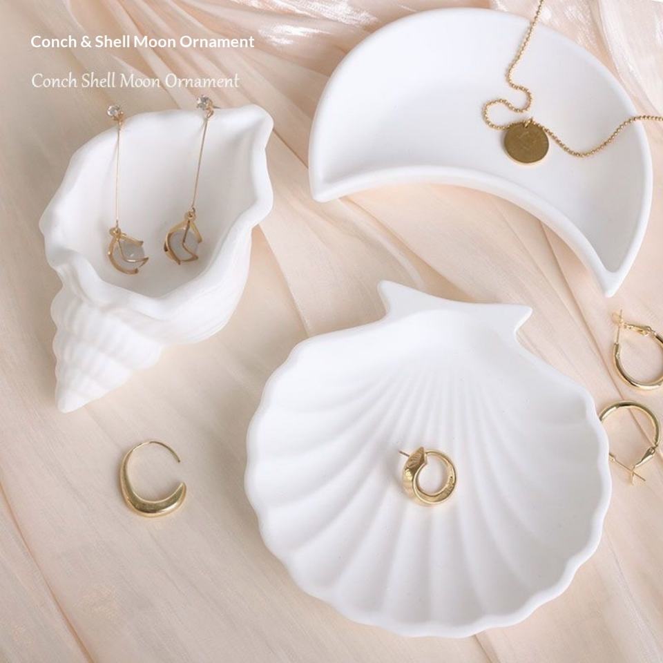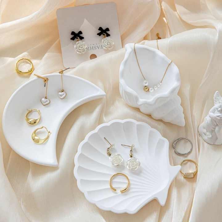 White Shell Conch Photo Props Storage Tray Small Seashell Jewelry Tray for Earrings Necklaces Rings Display