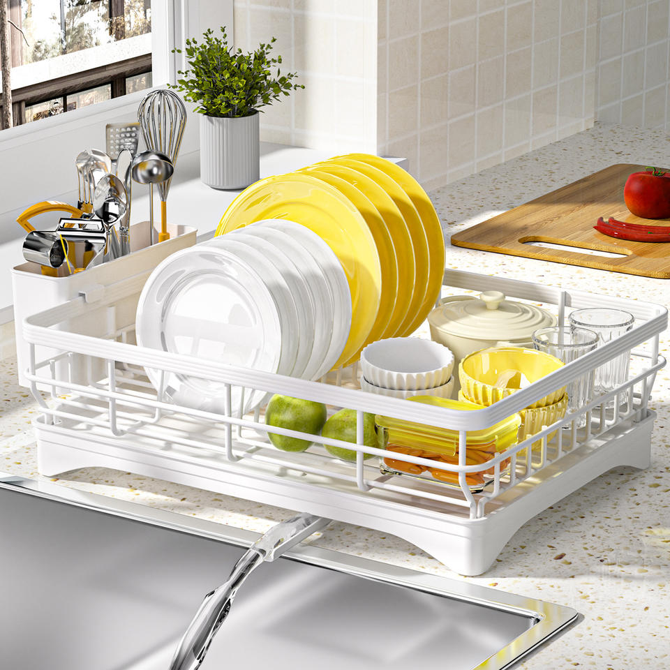 White Single Layer Dish Rack Large Capacity Kitchen Draining Rack For Kitchenware