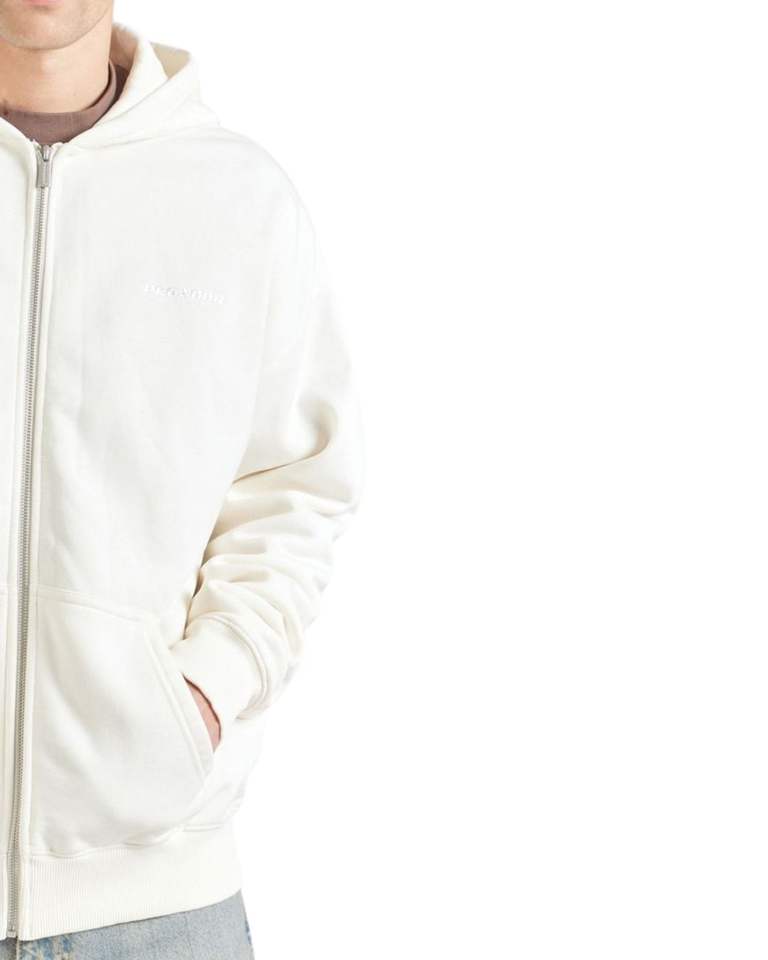 White Solid Zip Up Hoodie With Kangaroo Pocket Casual Unisex Soft Warm Fleece Minimal Streetwear Fashion Jacket