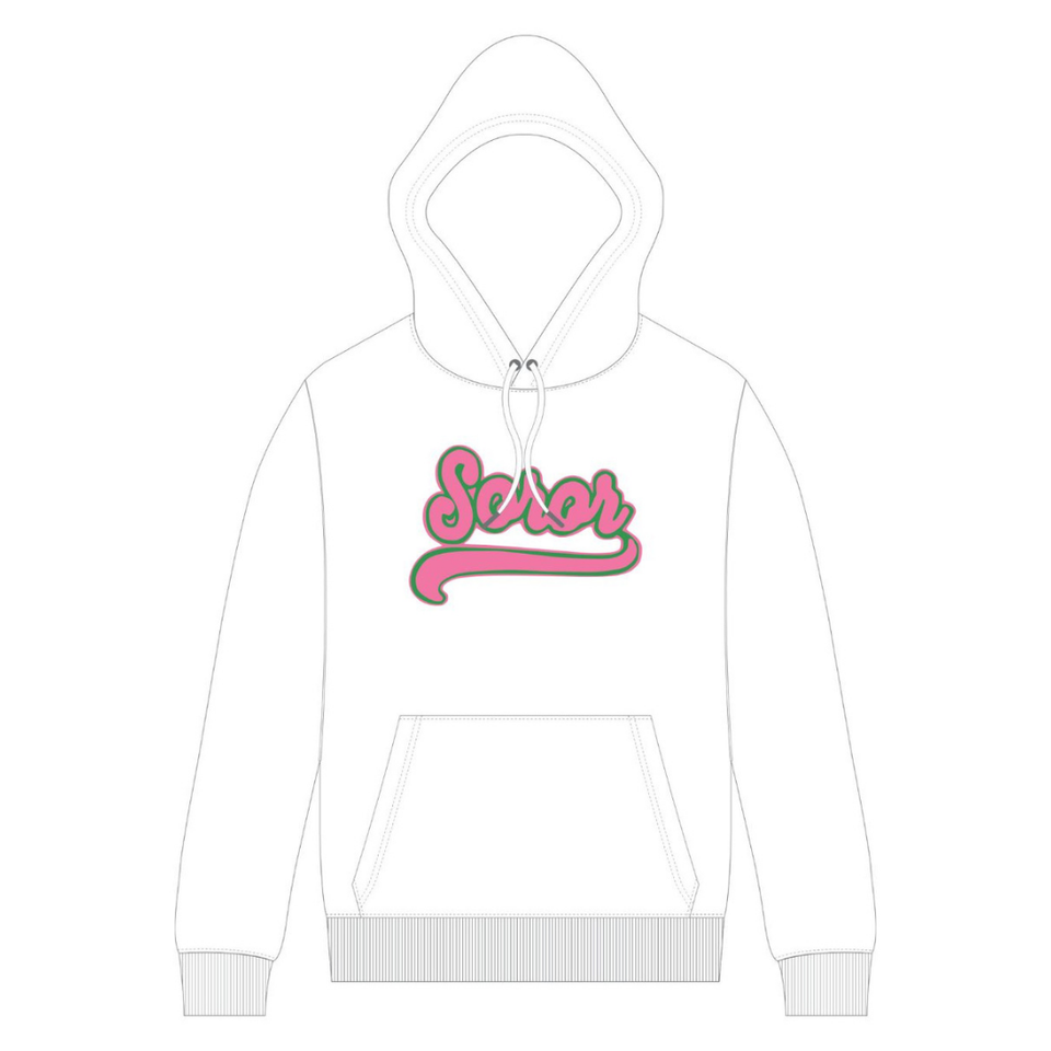 White Soror Pullover Hoodie Greek Sorority Womens Pink & Green College Sisterhood Stylish Casual Hoodie Apparel