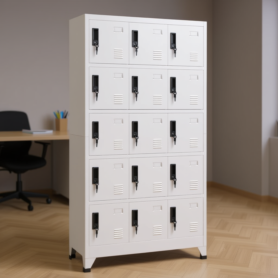 White Steel Locker Cabinet 100x70Cm Five Layers Standing Storage Office Organizer Minimalist Design