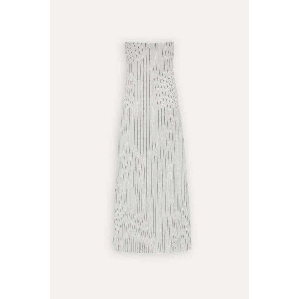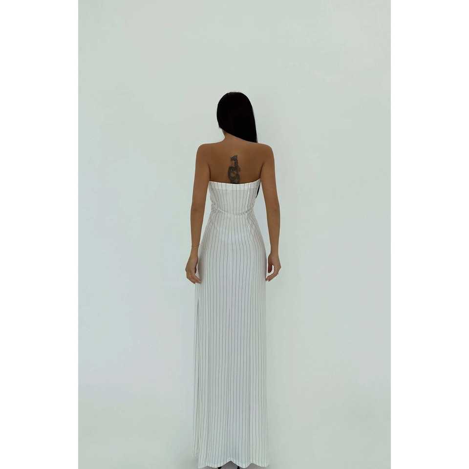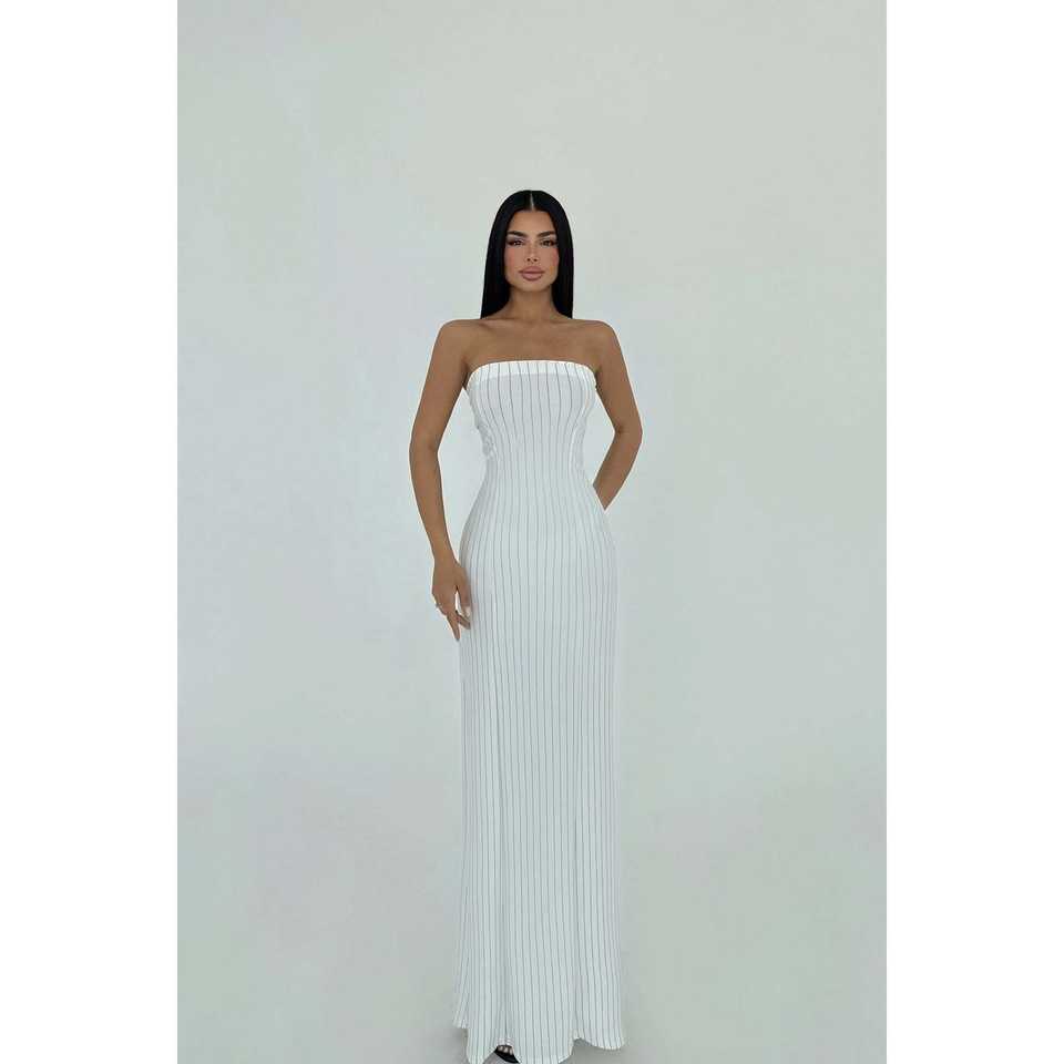White Strapless Striped Dress Collarless Hip Skirt Party Style Size XS to XXL for Banquets Evenings Dinners Days