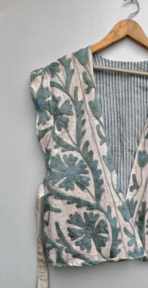 White Suzani Velvet Floral Boho Vest Embroidered Sleeveless Jacket with Ethnic Waistcoat Chic Winter