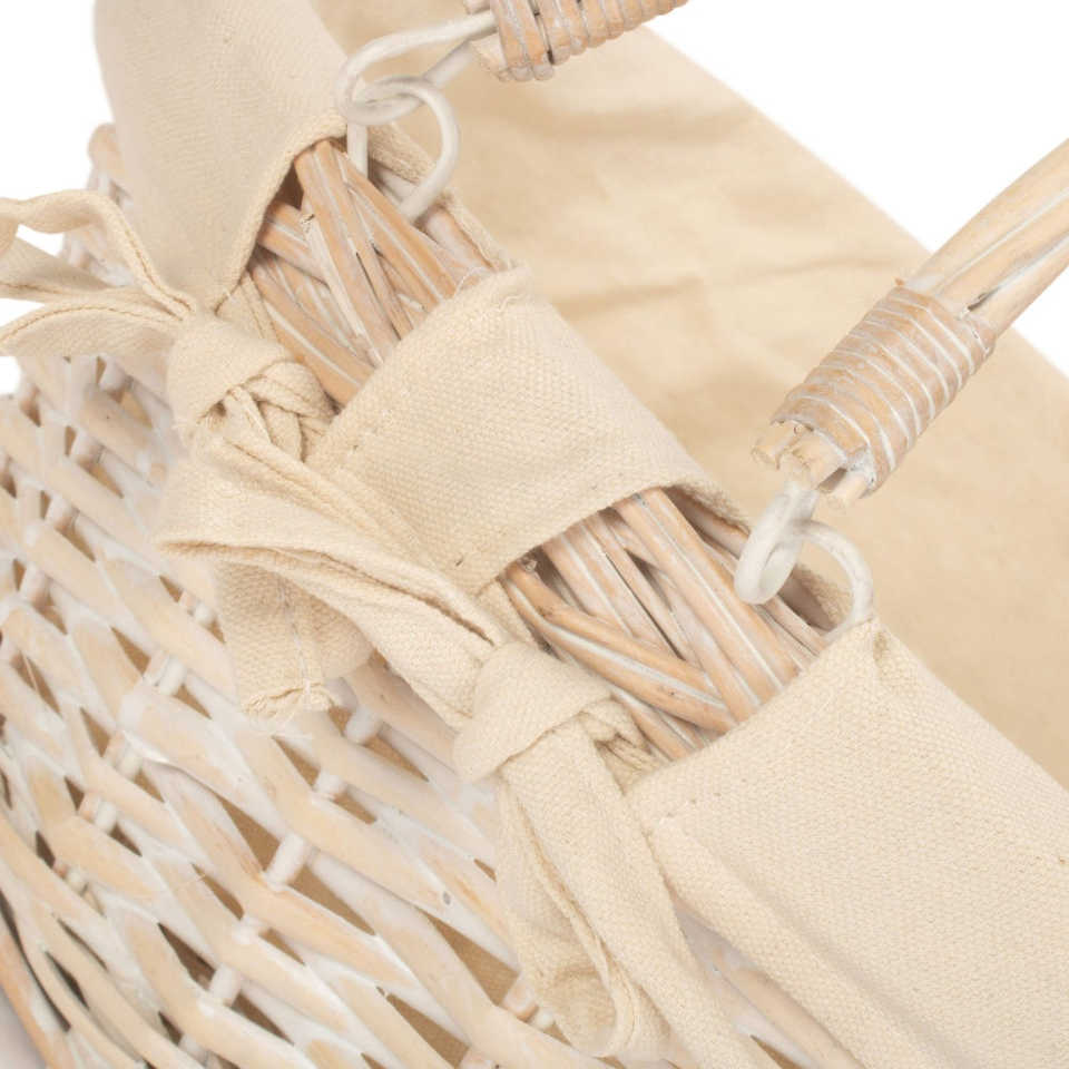 White Swing Handle Wicker Picnic Bag with White Lining Shopper Style