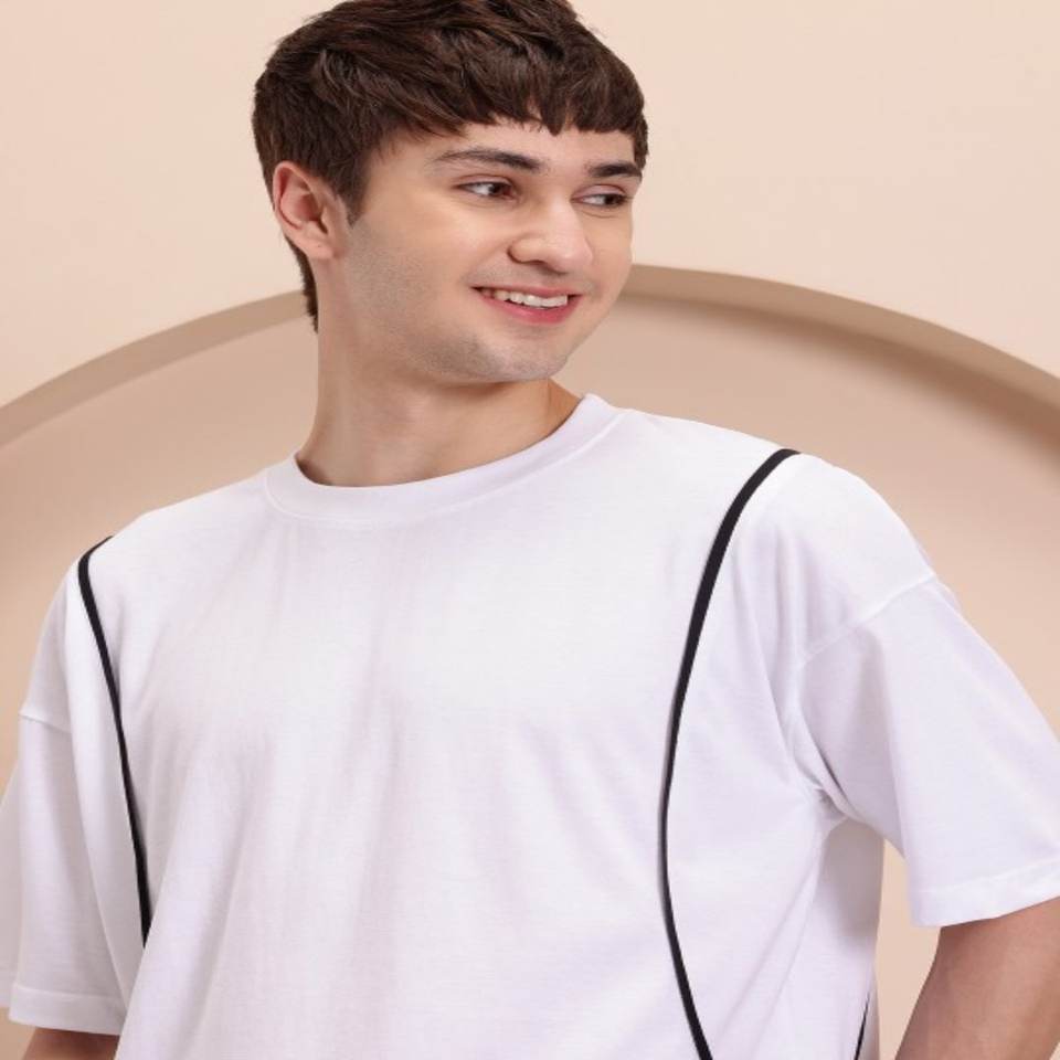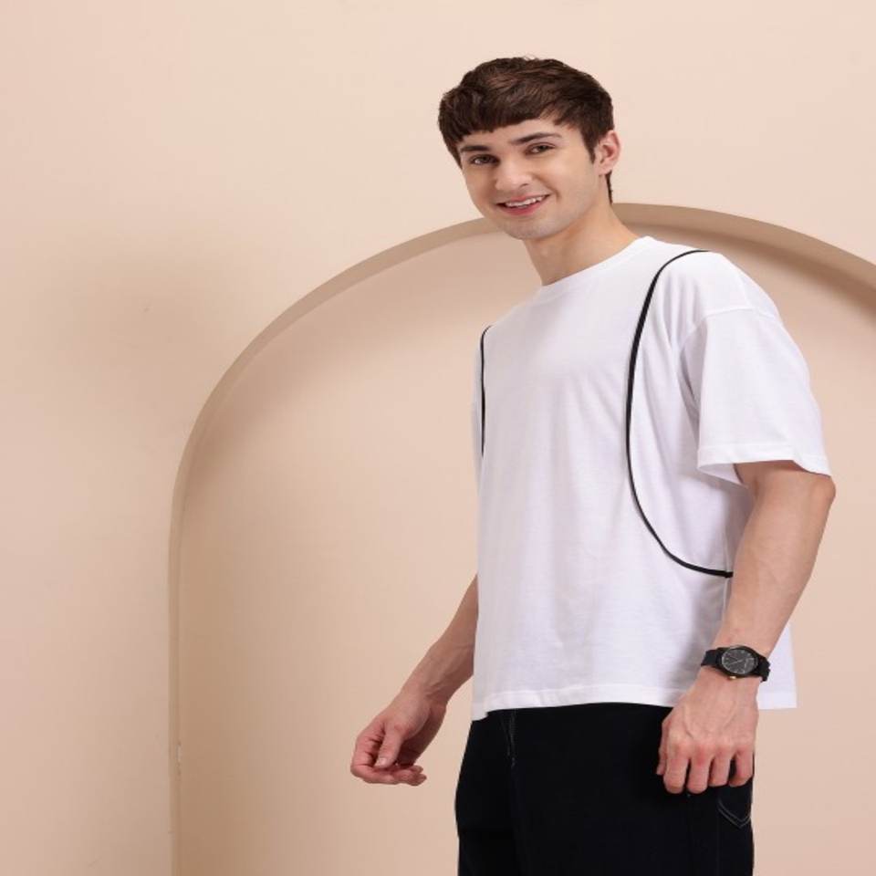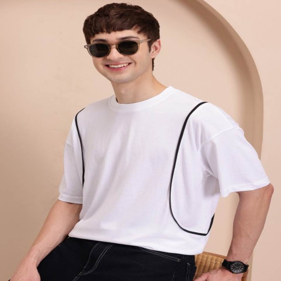 White T-shirt for men Solid Regular length Round neck Short, drop-shoulder sleeves Knitted cotton fabric made in India