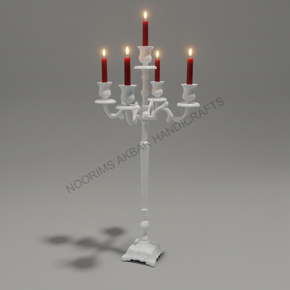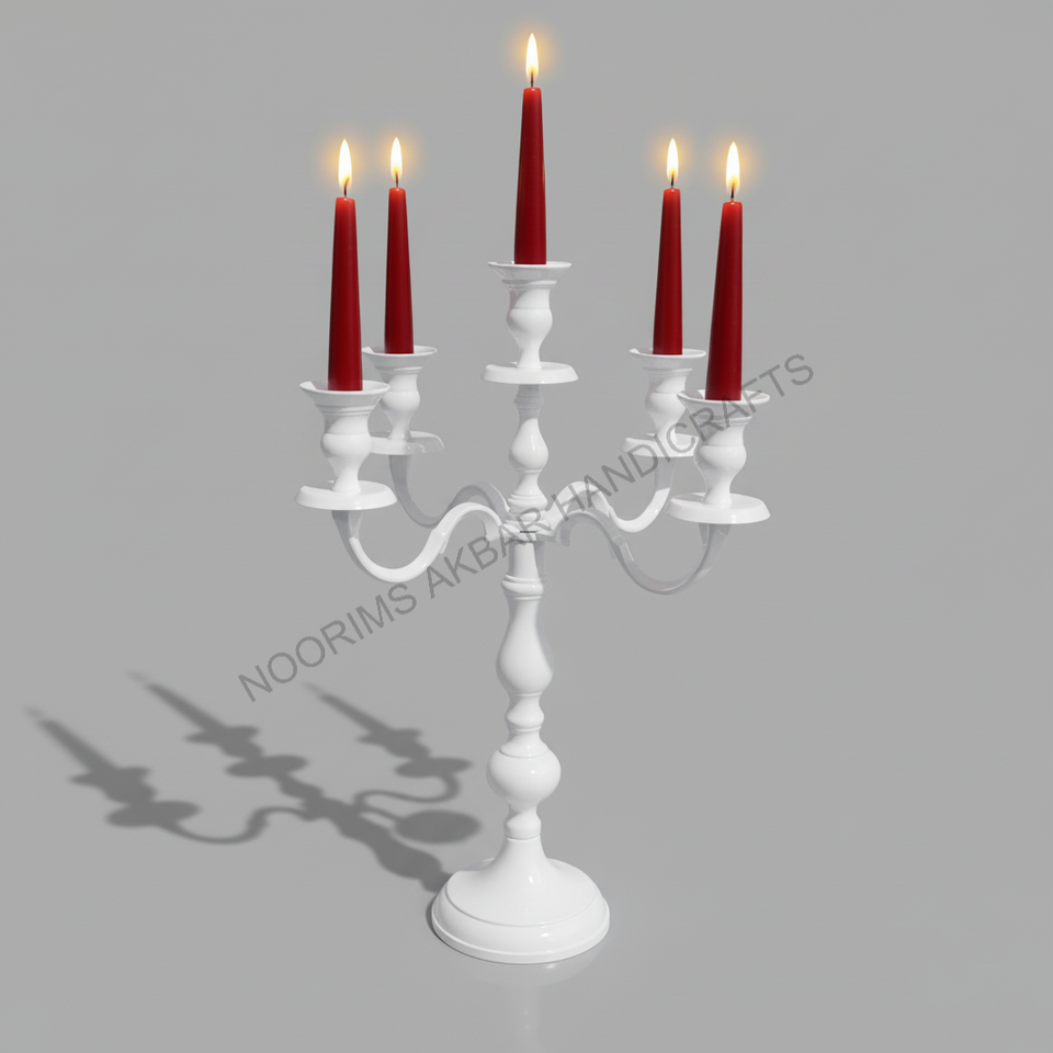 White Table Top Five Arm Candle Holder Candelabra Votive Stand for Wedding Birthday Party Decorative Home Decor Factory Exporter