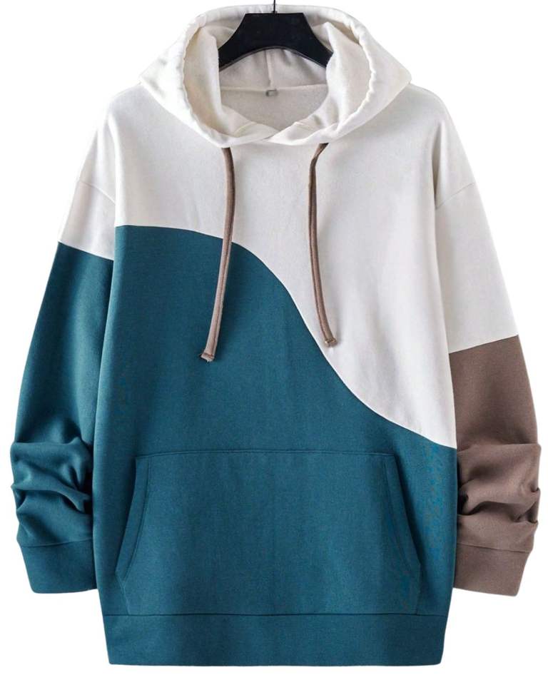 White Teal Brown Colorblock Hoodie Unisex Casual Oversized Soft Fleece Pullover Warm Winter Streetwear Kangaroo Pocket Hooded