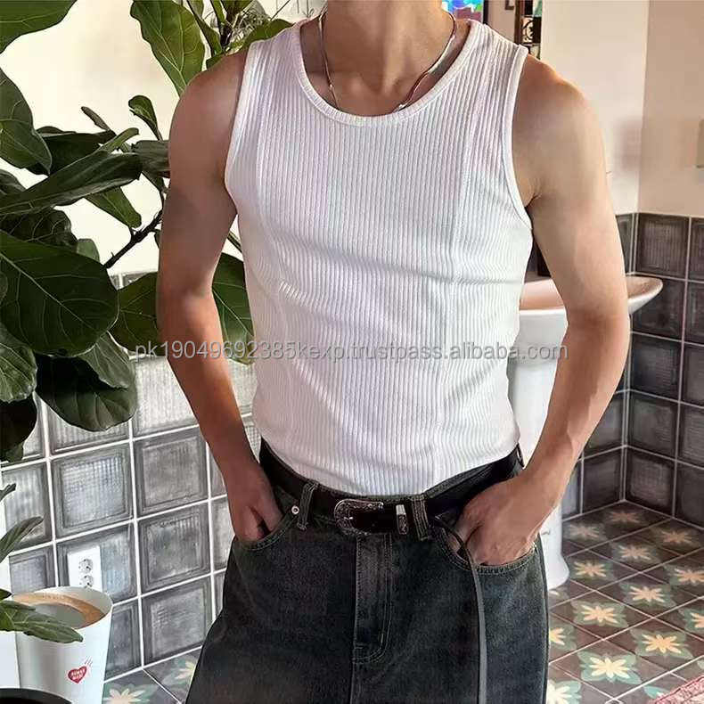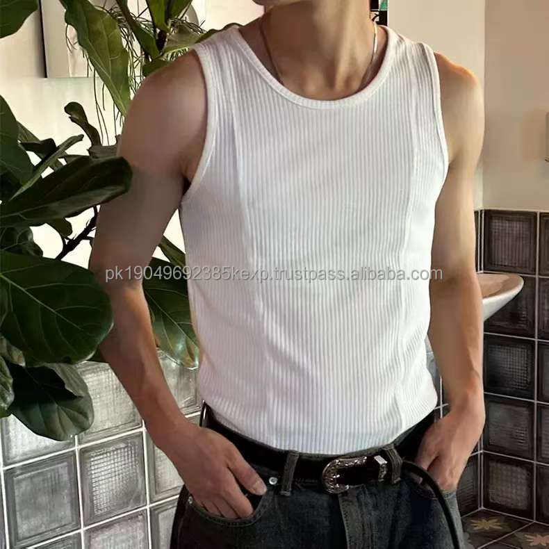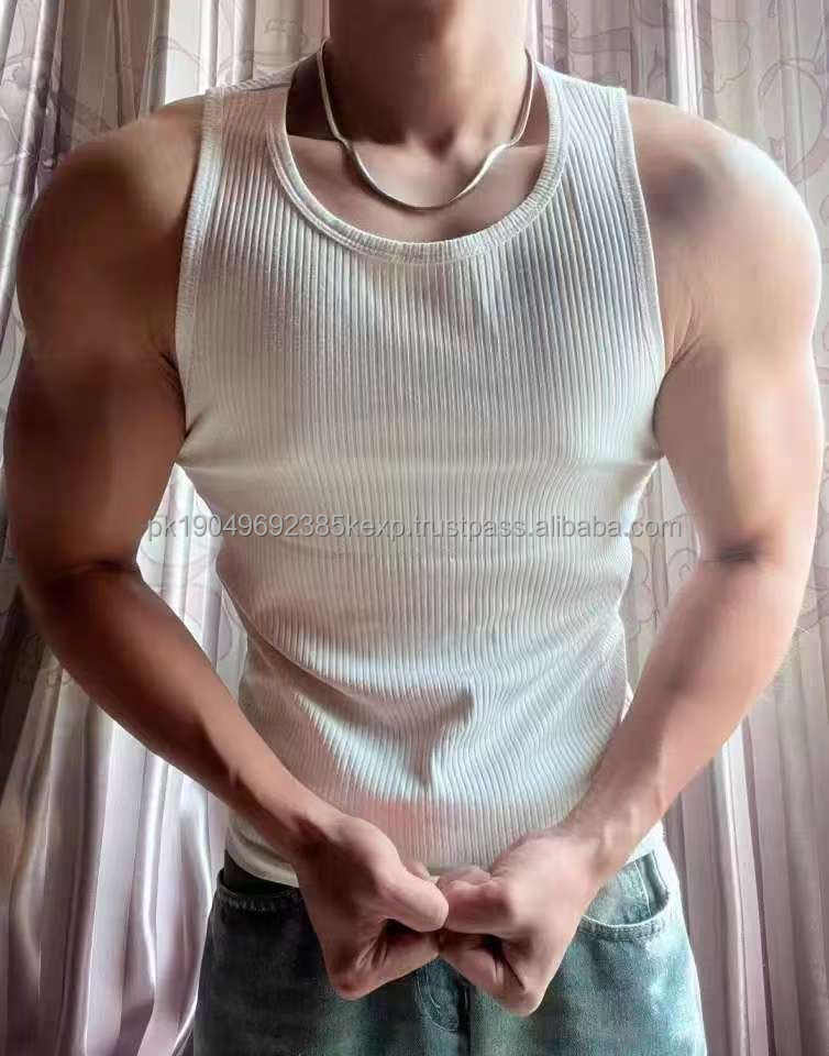 White Thick Ribbed Tank Top Men's Summer Slim Muscle Sleeveless T-Shirt American Fitness and Sports Tank-Tops