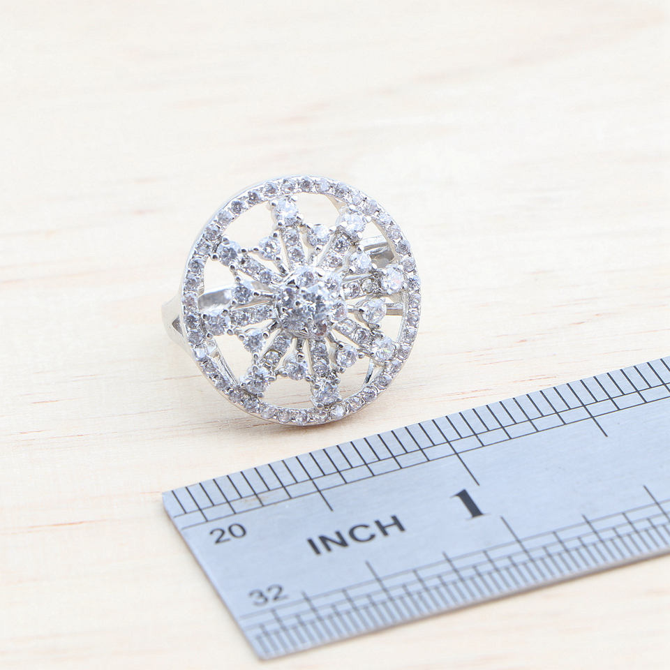 White Topaz 925 Silver Jewelry Sets for Women Costume Bridal Wedding Earrings Ring Zircon Stones Bracelet Pendant Necklace Set
