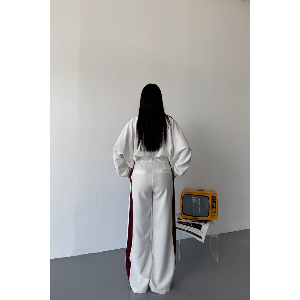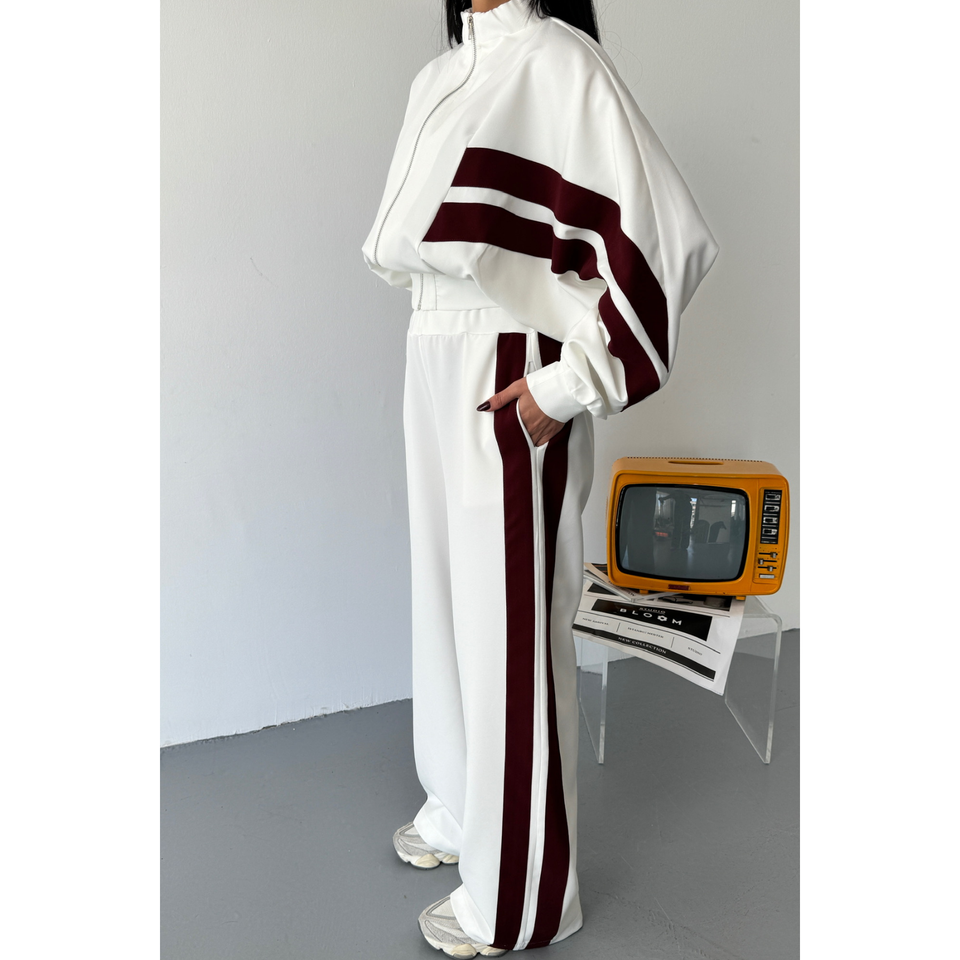 White Tracksuit Set with Thick Black Stripes on Sides