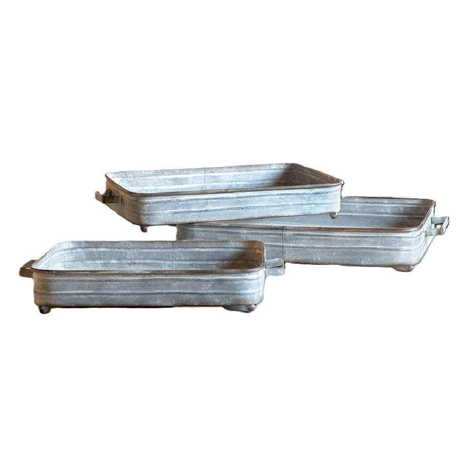 White Wash Rectangle Shape Galvanized Metal Serving Tray for Home Kitchen Dining Table Food and Drink Serving Tray Handicrafts