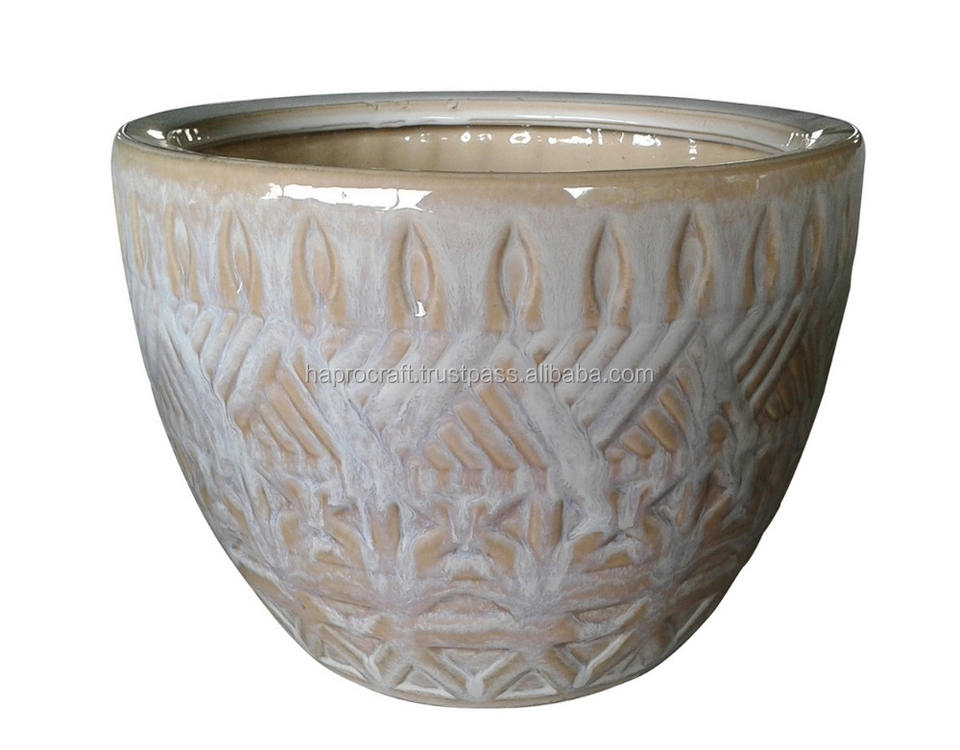 White Washed Ceramic Plant Pot Set 3 Sizes with Mixed Colors and New Designs for Garden or Outdoor