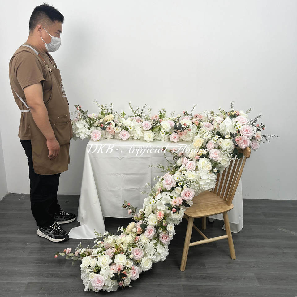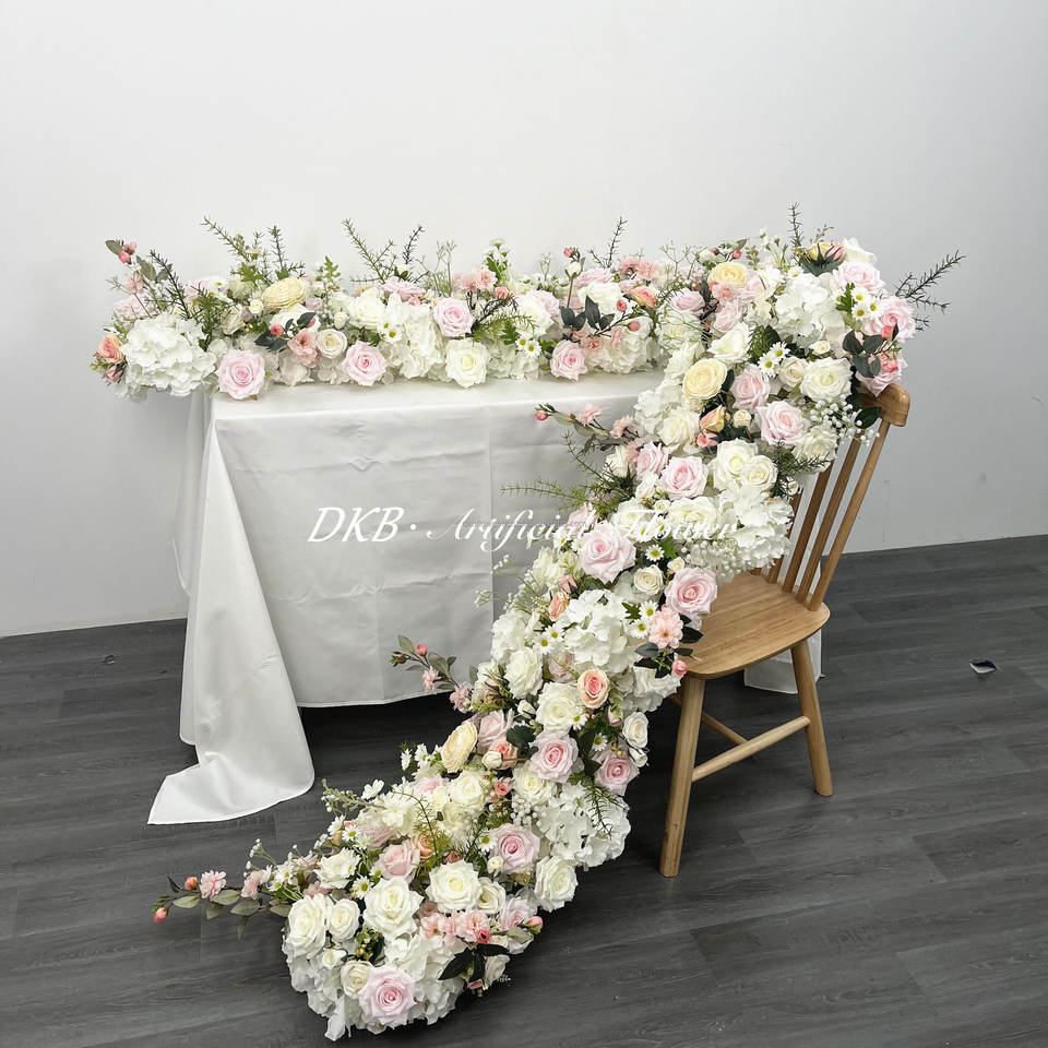 White Wed Table Artificial Floor Floral Arrangements Wed Aisle Flower Floral Table Runner for Wedding