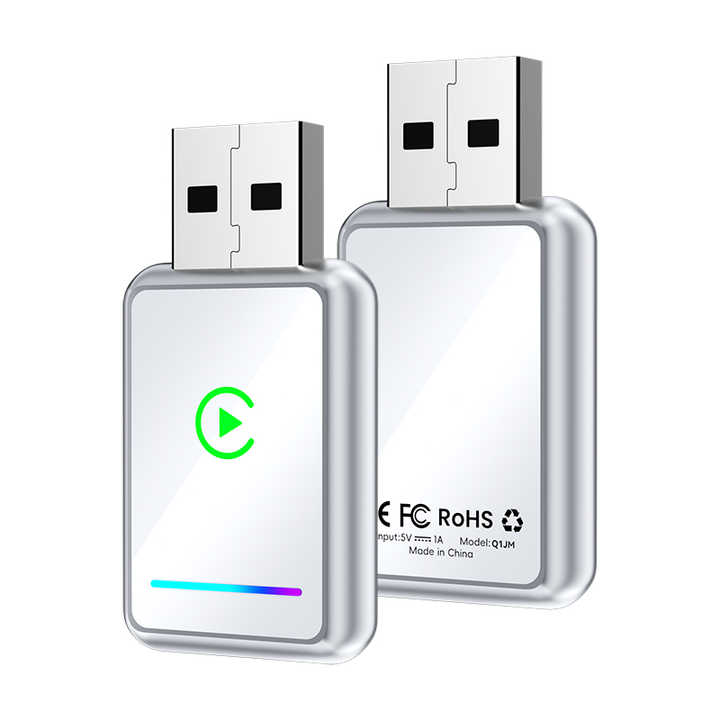 White Wireless Carplay Android Auto Adapter 2 in 1 USB Carplay Dongle