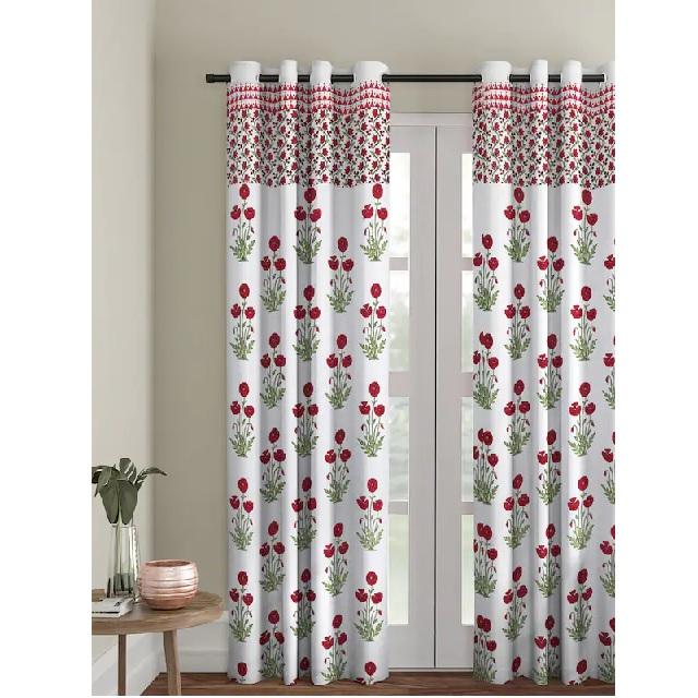 White With Red Flower Design 100% Organic Cotton GOTS Certified Curtains