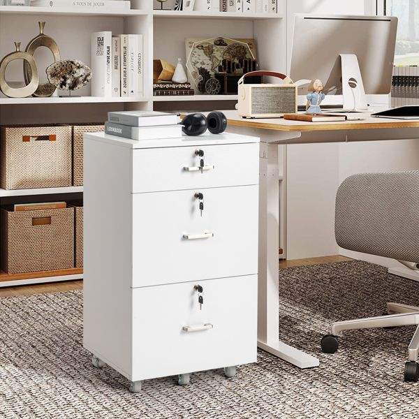 White Wood Grain Density Board Legal&Letter Labeled Documents Filing Cabinet with One Small Drawer and Two Large Drawers