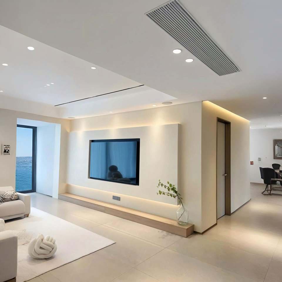 White Wood Molding TV Stands with Backdrop Wall for Home Hotel Living Room Furniture Elegant Display in Cabinets