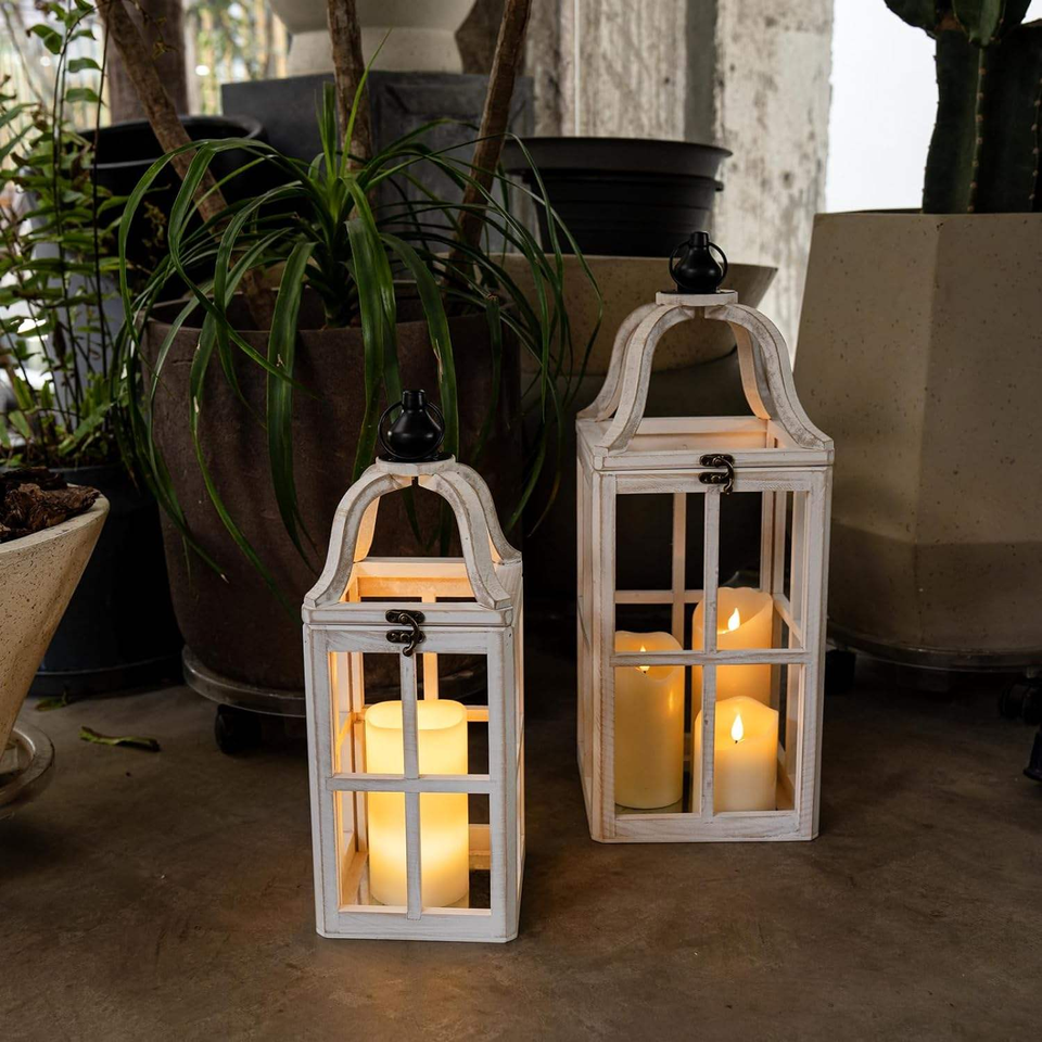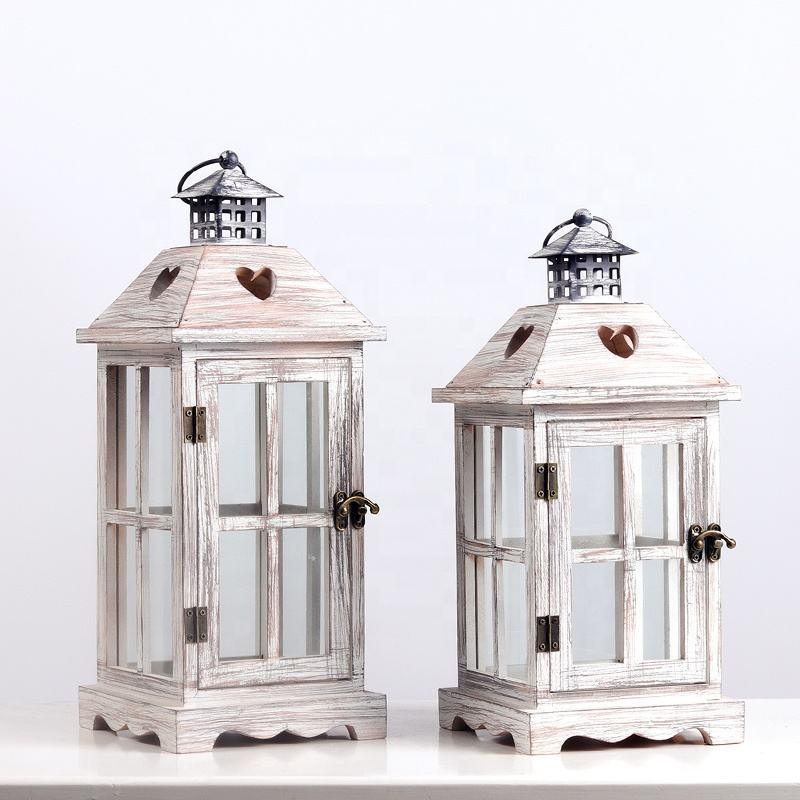 White Wooden Classic Eco-Friendly Customizable Lantern with Candle for Home Decor Wedding Garden & Courtyard Use