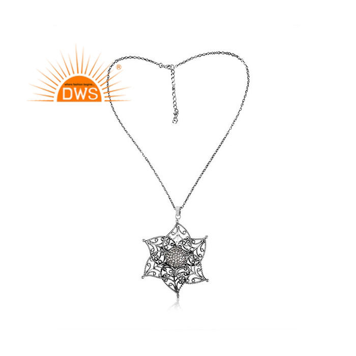 White Zircon Gemstone Flower Design Women's Weddings Pendant Jewelry Wholesaler 925 Sterling Silver Oxidized Jewelry Supplier