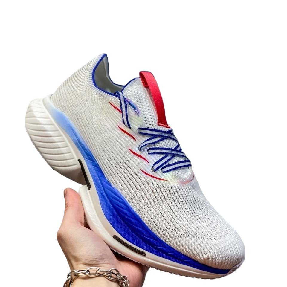 White and Blue Cloth Running Shoes Breathable Mesh Lining Upper with Shock Absorbing Midsole for Unisex Daily Wear