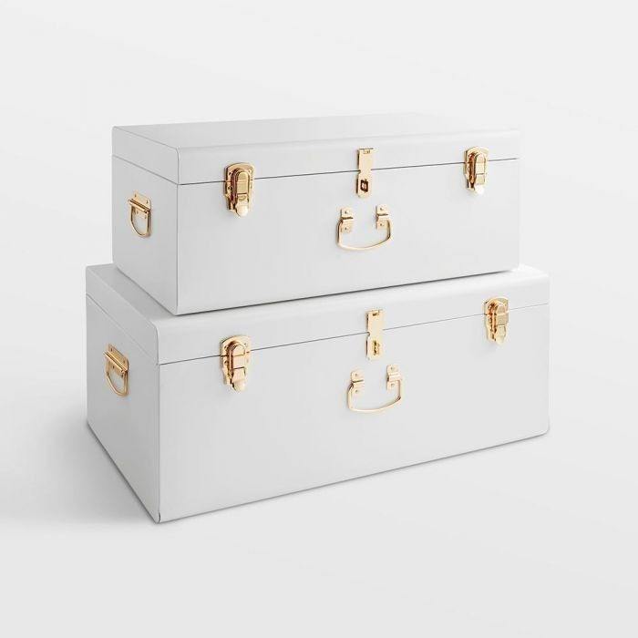 White and Gold Handmade Metal Material Iron Storage Trunk Set of 3 Pcs Nested Tin Black Trunk Storage Box