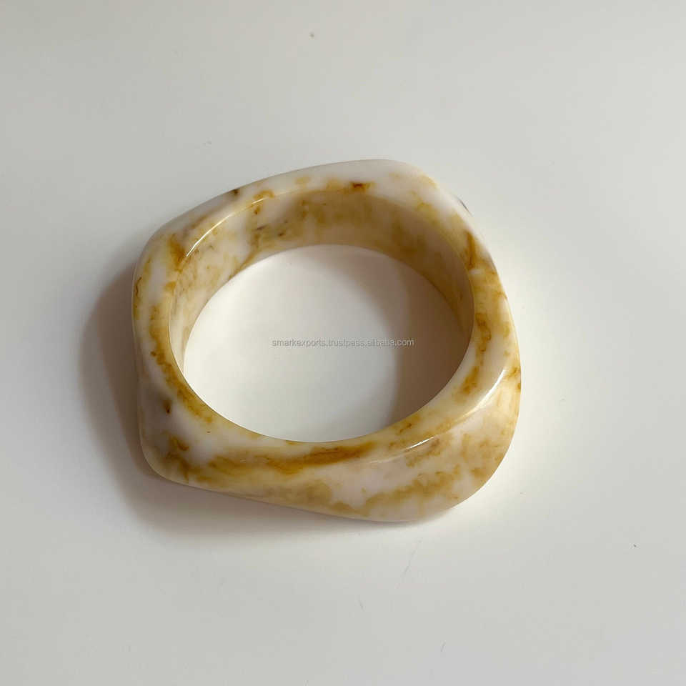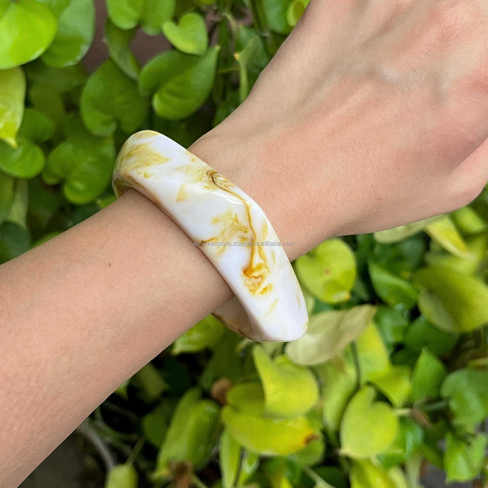 White and Gold Resin Bangle Fashion Bracelet Stylish Wristwear Jewelry for Women and Girls Chunky Armlet Statement Accessory