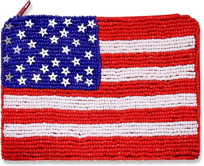 White green red Design White Colour High Quality Cowboy Beaded Pouch Handcrafted Western Mini Coin Purse Zipper Closure Canvas