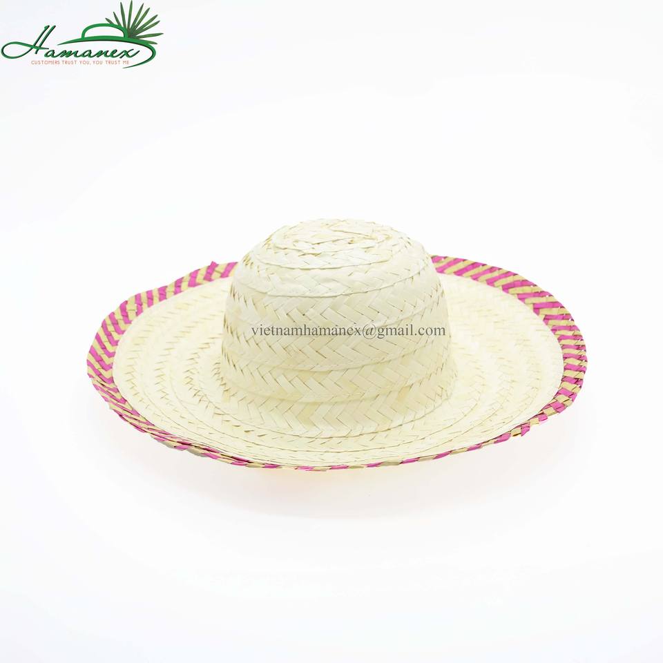 White hat is made from straw with a rotating design and a red and yellow pattern border model HA284