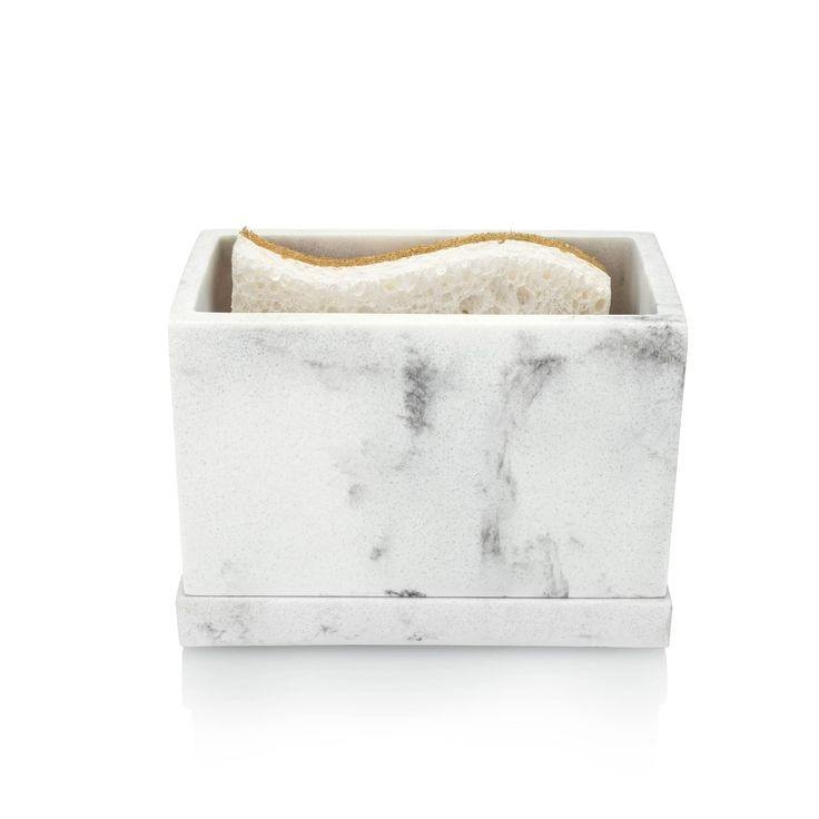 White marble kitchen sink sponge holder with non-slip base elegant countertop sponge storage stand for home cleaning decor gift