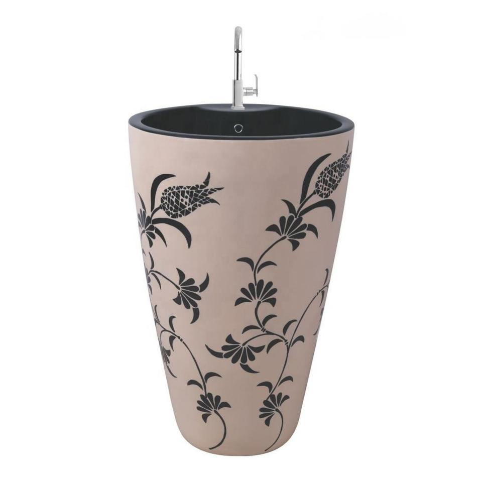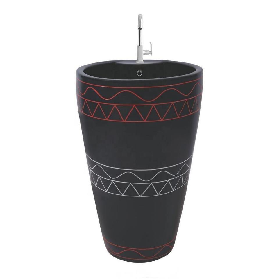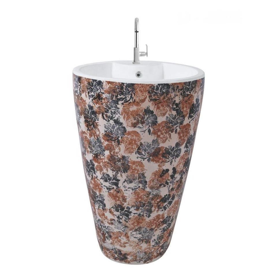 White print round shape one piece wash basin modern cylindrical freestanding solid surface marble pedestal bathroom sink