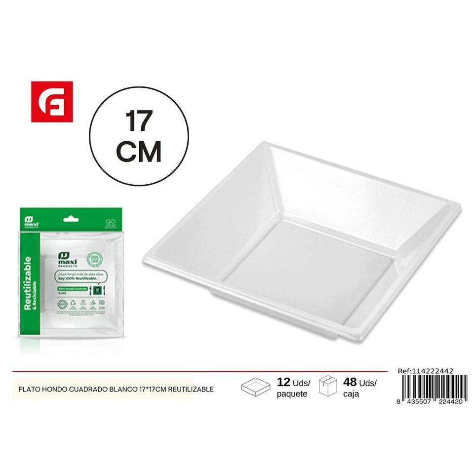White square deep plate 17x17 cm reusable 6 units - Disposable utensils
