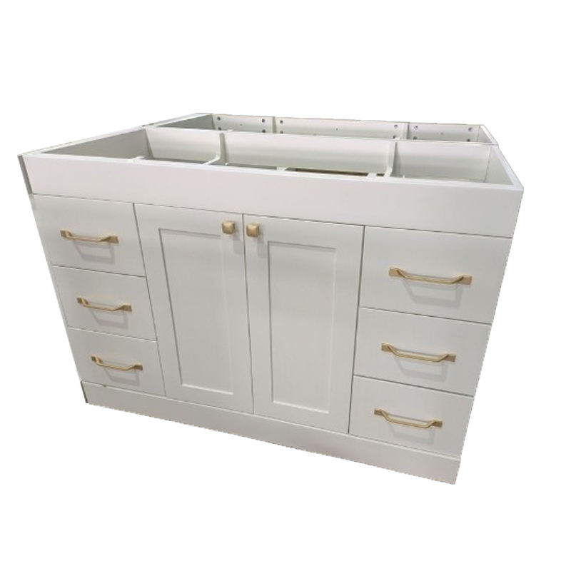 White with Brushed Gold Trim Bathroom Vanity Base Cabinet without Top