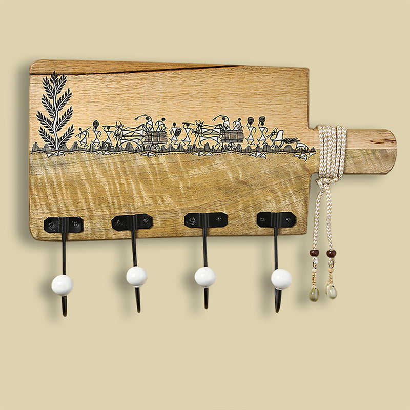 Whitewood Canvas Wall Cloth Hanger Modern Luxury Warli Hand-Painting Jute Dori Plastic Wood Hangers Bags Customizable Logo
