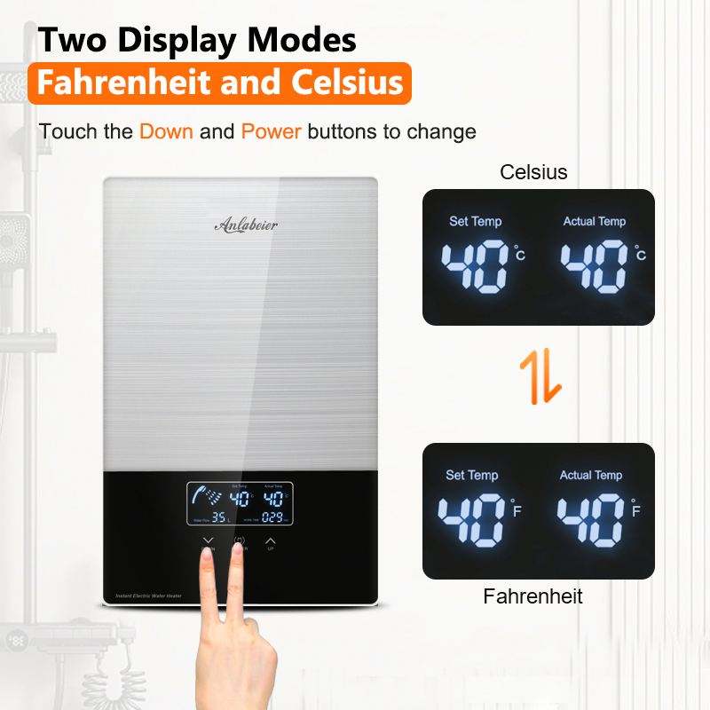Silver Tankless Instant Geyser 8-12kw Electric Water Heater for Hotel Household Fast Hot 8-12kw Shower Whole Water Plastic Fast