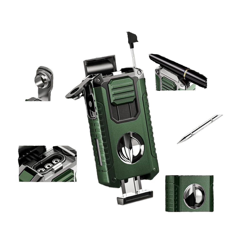 Whole Portable Classic Pattern Metal Windproof V-Cut Foldable Safety Customizable Logo Multi-Function Cigar Lighter