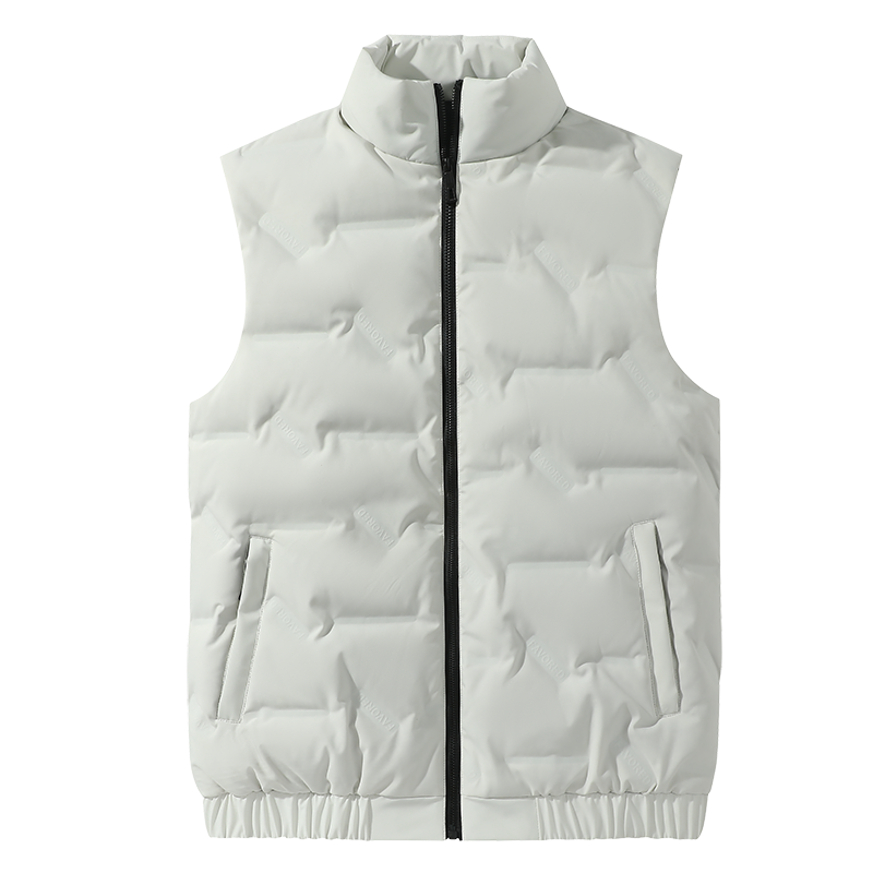 Whole Sale New Fashion Custom Warm Sleeveless Puffer Jacket Men Canvas Stand Collar Front Windproof Lightweight Winter