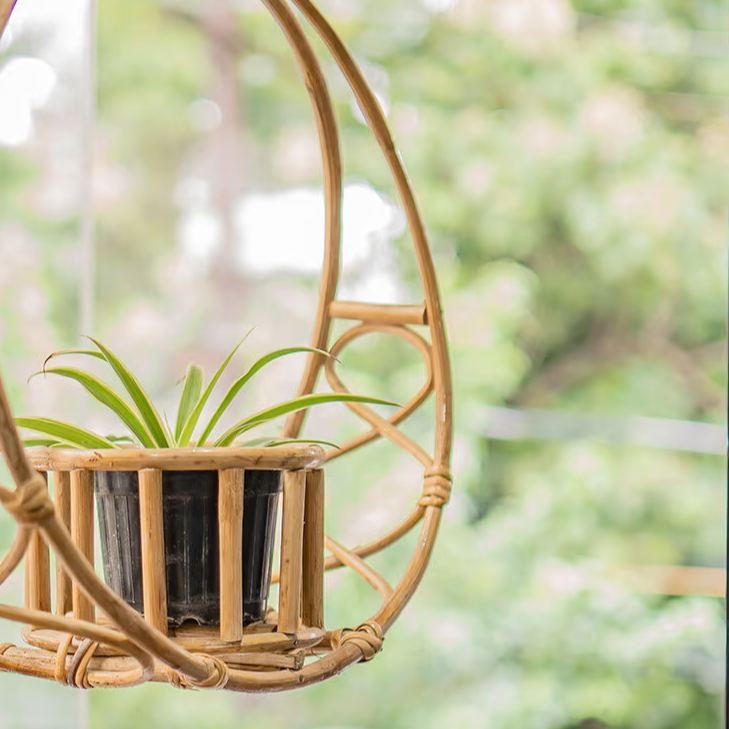 Whole Sale Rattan Ring Hanging Planter Natural Rattan Wicker Plant Holder Indoor Wall Hanging Plant Pot Woven Boho Home Decor