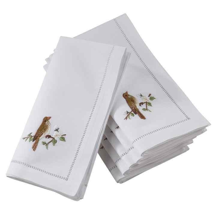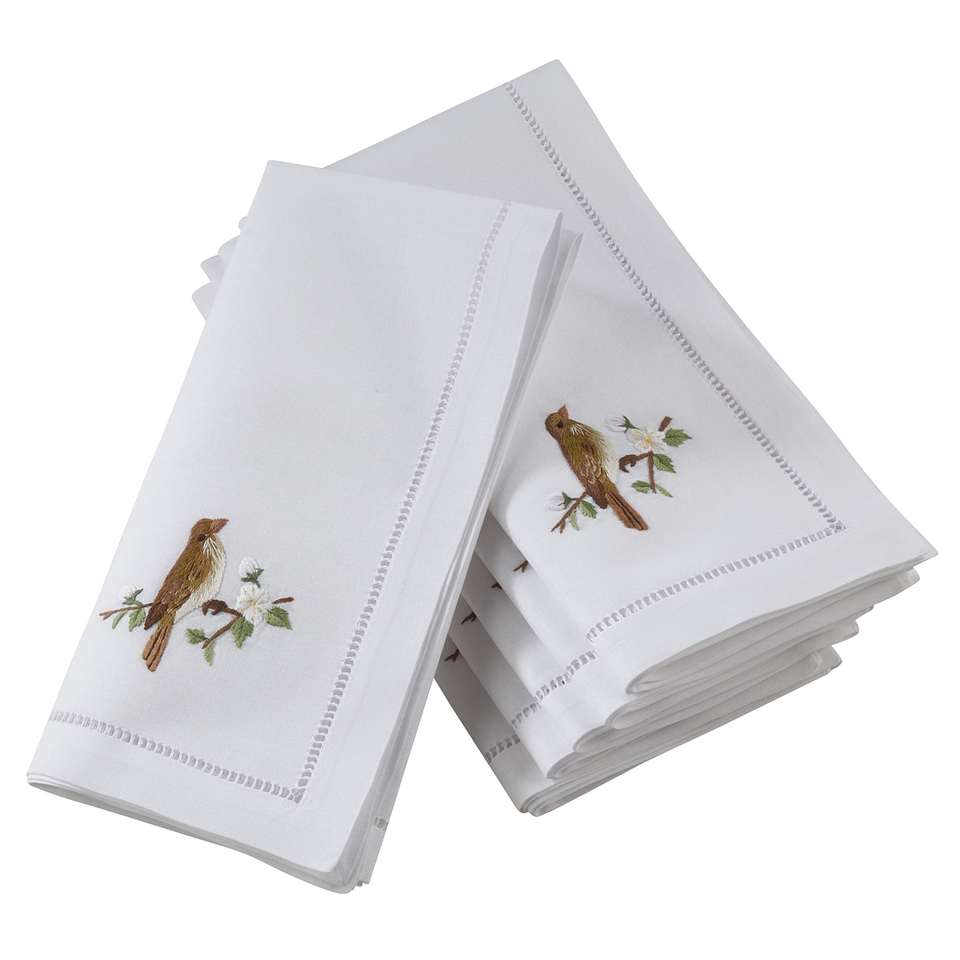 Whole Sale Top Quality Bird Embroidery Linen Napkin Eco Friendly 100% Cotton Sustained Reusable Wedding & Restaurant Use Soft