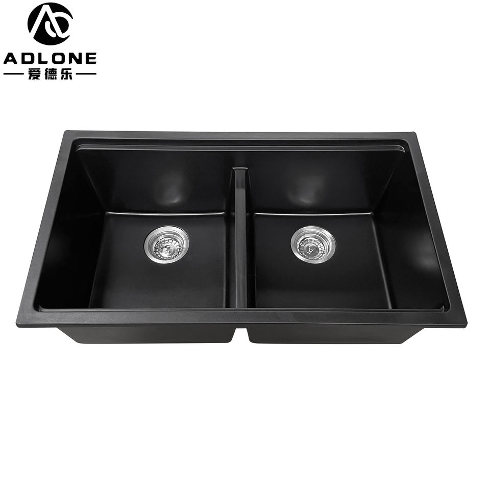 Whole Set Accessories Double Quartz Black Color Kitchen Quartz Sink Kitchen Sinks Granite with Drainer