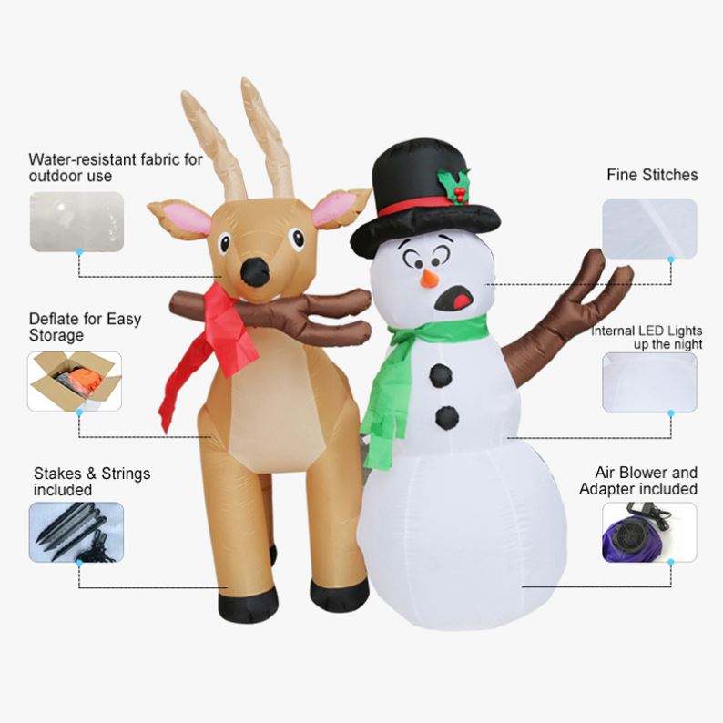 Wholesale 1.2m Large Festival Inflatables Inflatable Christmas Decoration Snowman and Deer