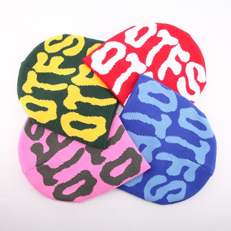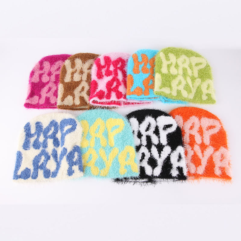 Wholesale 100% Acrylic Jacquard Knitted Beanie Hat Mohair Cap Custom Winter Hats for Beach or Business Common Fabric Feature